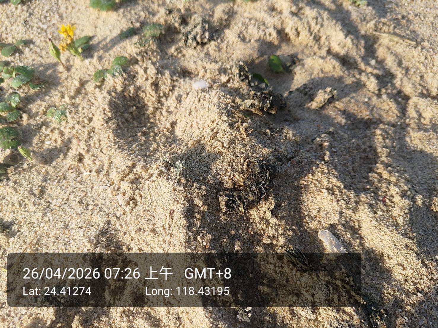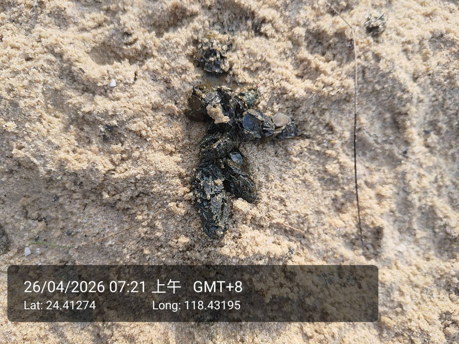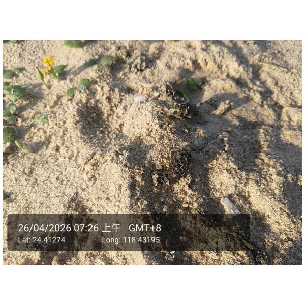 物種--- (未鑑定)[原始紀錄物種] 水獺 Lutra lutra鑑定未鑑定日期2026-04-26地點記錄者黃明芳 發現類型 排遺 描述 82據點沙灘上水獺足跡、滾痕、排遺 數量3授權照片授權: CC BY (黃明芳)識別號88f8b1b5-eb13-4069-9a84-3c91786847f6 (OccurrenceUUID)2010124 (nid)
